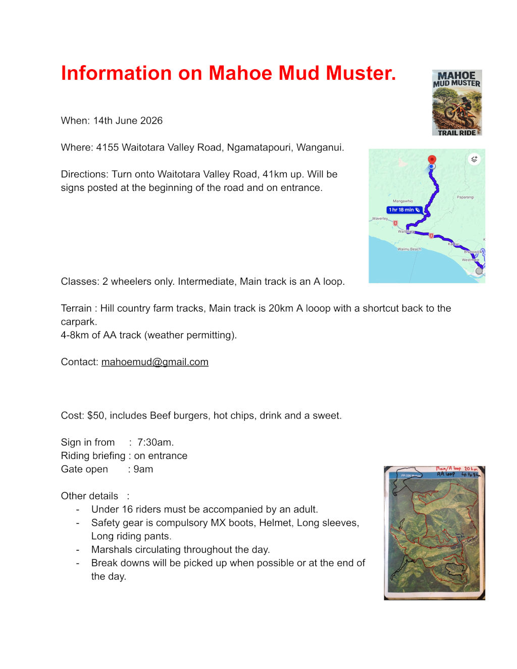 Hill country farm tracks, Main track is 20km A loop with a shortcut back to the carpark.