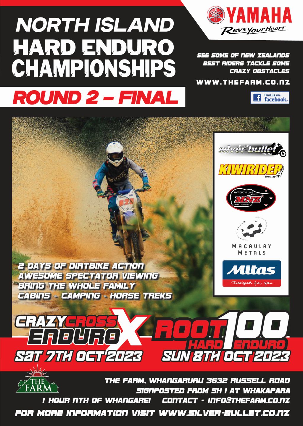Saturday: sprints, 2, possibly 3 tests , a tight bush, enduro x and cross country. Approx 5 mins ride time each, each test open for an hour or so , cuppa tea break then on to the next. Best 3 times to count, all test start and finish from the hangar