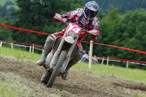 On Sunday I was looking for a better finish and was pushing hard, maybe too hard. I had a big crash in the Enduro test, hurting my hand. I thought that I had broken the end of my bars off when I got back on as I had no feeling in my hand and I couldn't feel the end of the bars. After a quick check all controls were intact so I took off and finished the test. Strange sensation riding and not feeling the bars and lever on one side. Anyway another crash in a cross test finishing 8th. Not bad considering the time spent on the ground.