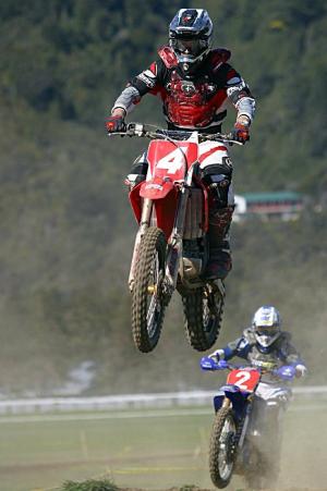 Photo - Corrie Sargent (Honda) #4 leading Darryl King (Yamaha) #2 at Trentham: