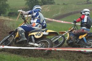 Neville Coombe (46) and Peter Ploen (7), (pic) two great motocross names from years past, battle it out during the opening round of this year's Mister Vintage Motocross Series near Halcombe on Saturday. It was a case of four seasons in one day at the big vintage meeting, with blazing sun, frequent showers and gusty winds mixing it up with the more than 100 riders who showed for the first of four rounds this season.