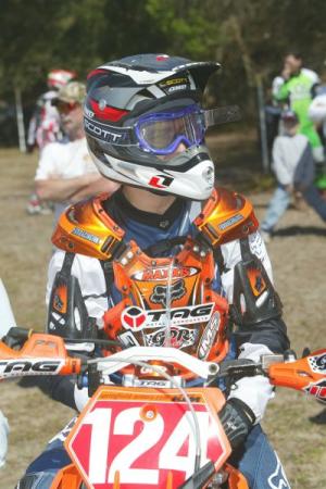 Watts began with a decent jump off the line on his 200EXC but was then pushed back in the melee through the first few turns and then proceeded to have a dismal first half lap with several small crashes, breaking his Roll-off’s, and basically not being aggressive enough in the conditions. Already he was back with the 250A class riders. From that point on Watts began to charge and quickly worked his way forward and got into second position right near the end of lap 3. The mid stages of lap four saw Watts pick a few bad lines and have another high speed crash which dropped him back to fourth, right behind the two guys in front of him.