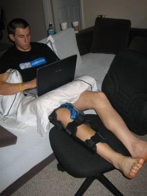 Aldon got things set up for an appointment with Dr Tom Haney and Dr Chris Berg who are orthopaedic doctors here in town. Early Tuesday morning I had an MRI and more x-rays taken to determine if there was any more damage from the dislocation. I was hoping for the best as the pain hadn't been too bad overnight and the swelling wasn't that great at all. Dr. Haney was able to have a look at the MRI straight away and determined that my ACL,MCL and PCL are all torn and will need full reconstruction. The MRI was sent away for further checks to make sure there was nothing else in there that had been missed.
