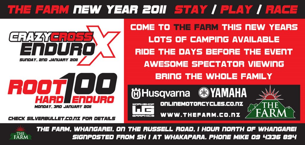 Terrain: Natural terrain enduro cross. This means creek-crossings, hills, bogs, drop-offs.
