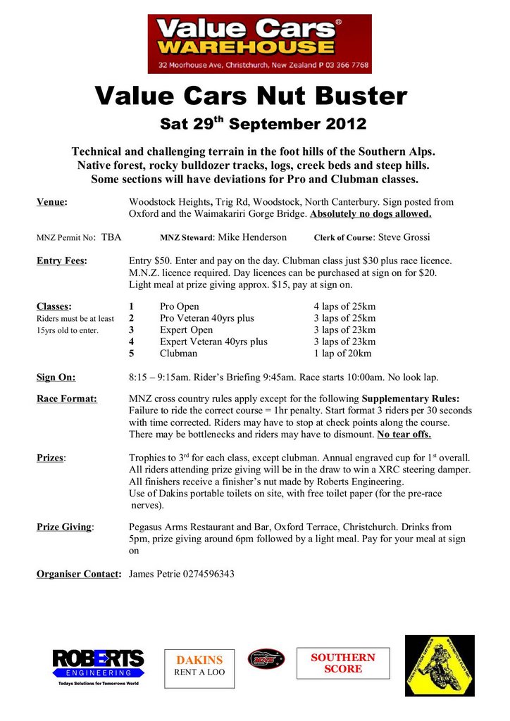 Organiser: Christchurch Off Road MCC