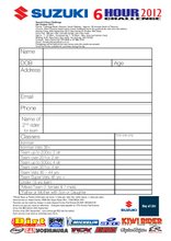 Suzuki 6 Hour, Entry Form